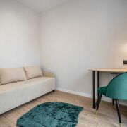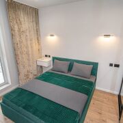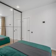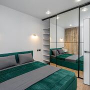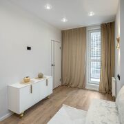 - Квартира укомплектована мебелью, выполненной на заказ; кровать 160см.; два диван имеют полноценное двуспальное место; продумано большое количество мест для хранения.