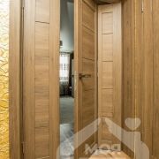 -В коридоре предусмотрена удобная кладовка, межкомнатные двери новые, МДФ, выдержаны в одном стиле с мебелью. В гостиной - дверь по уникальному проекту с оригинальной системой створок, которая становится интерьерным акцентом.