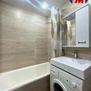 - Санузел аккуратный, полностью облицован плиткой, установлена современная сантехника, стиральная машина и водонагреватель, что обеспечивает комфорт даже в период отключения горячей воды.