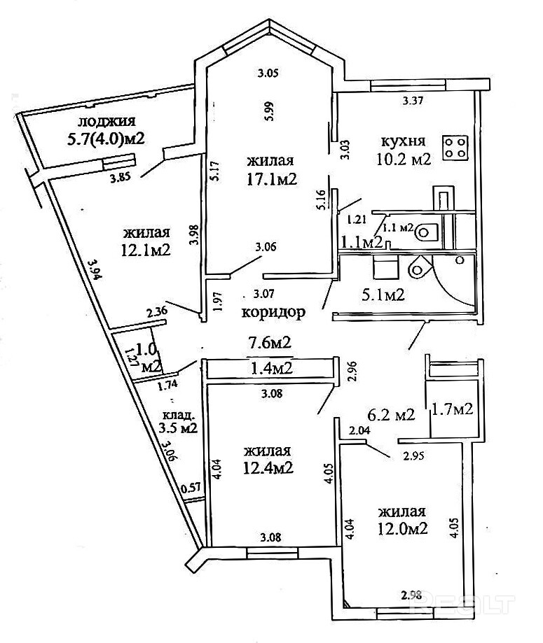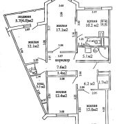 ·4 изолированные комнаты, кухня 10,2 м2, 2 санузла , гардеробная.