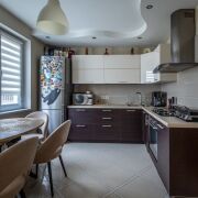 · Просторная кухня полностью укомплектована техникой и имеет продуманную систему хранения.
