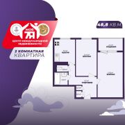 -Общая площадь 48,8 кв.м, жилая - 28,3 кв.м. Планировка удобная и понятная: две непроходные комнаты позволяют чётко разделить личное пространство и зону отдыха.