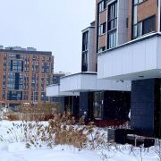Малоквартирный четырехэтажный дом с видом на парковую зону и подземным паркингом.