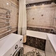 Квартира полностью готова к проживанию. В ней сделан аккуратный уютный ремонт – светлые красивые обои, линолеум Tarkett, свежая сантехника. В ванной пол с подогревом. В квартире комфортно и уютно в зимний период.