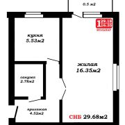 Площадь по СНБ 29.68 м2. Потолки высотой 2,93 м.