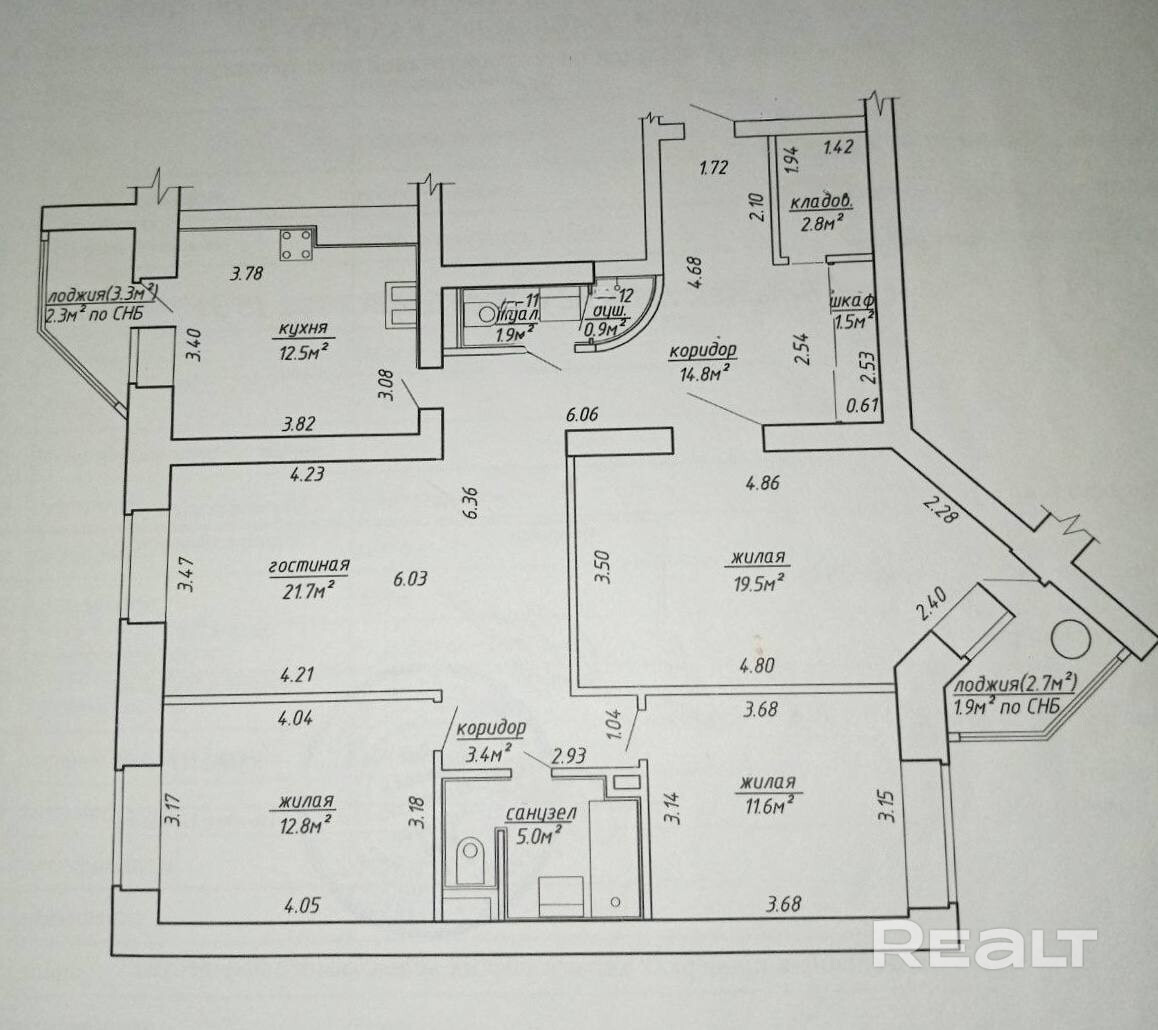 Просторная 4-комнатная квартира 2004 года постройки в тихом и удобном районе Минска. Общая площадь по СНБ 112,6 м2 (без учета лоджии — 108,4 м2). Жилая площадь 65,6 м2, кухня 12,5 м2. Квартира с хорошим ремонтом, готова к проживанию без дополнительных вложений. Преимущества расположения: Развитая инфраструктура: рядом школы, детские сады, поликлиники и магазины. Удобная транспортная развязка: доступность общественного транспорта, близость к основным магистралям. Зеленые зоны и прогулочные территории поблизости. Многообразие сервисов: кафе, спортивные клубы, банки, почта. Отличная перспектива для семей и людей, ищущих комфортное жилое пространство с вариативной планировкой. Особенности квартиры: Хороший ремонт, современная кухня и санузлы (при желании можно обновить по вкусу). Просторные комнаты и удобная планировка. Большая светлая кухня, удобная для семейного быта.