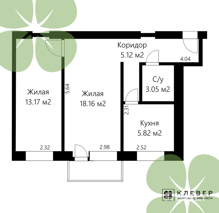 Изолированные жилые комнаты 13.17 м2 и 18.16 м2