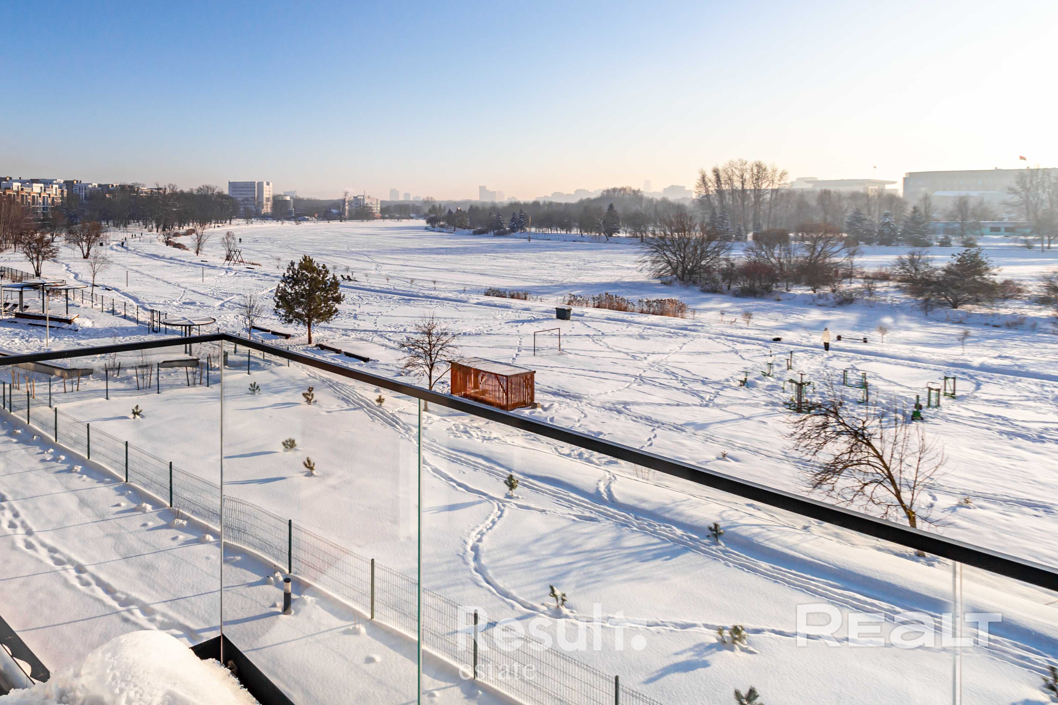 - Живописное расположение на берегу Свислочи с развитой инфраструктурой: все необходимое — магазины, кафе, школы — в шаговой доступности.