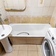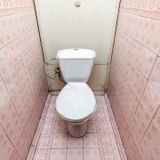 Раздельный санузел с кафельной плиткой (10×10 см).