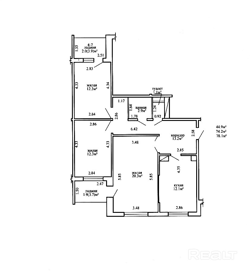 Ухоженный паркет в жилых комнатах и в коридоре. На кухни - плитка. Застеклённые две лоджии. Стеклопакеты