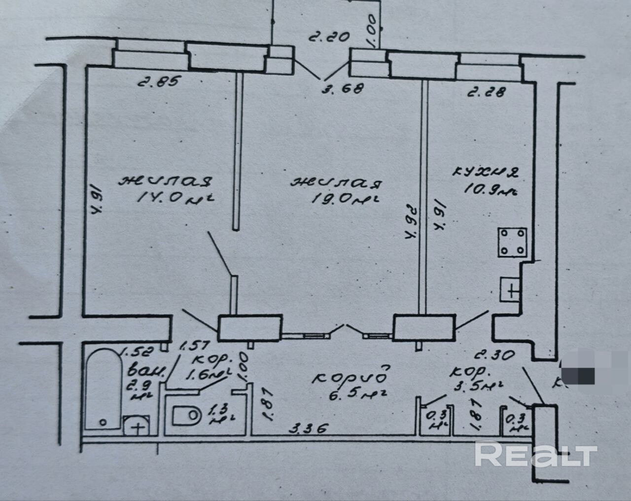 - Две изолированные комнаты: просторный зал 19м2 и спальня 14м2. Кухня приятной площади 10.9м2 позволяет выделить кухонную и обеденную зону.