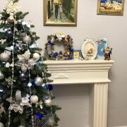 - Просторный зал украшен изысканной гипсовой лепниной (колонны, портал под камин, потолок).