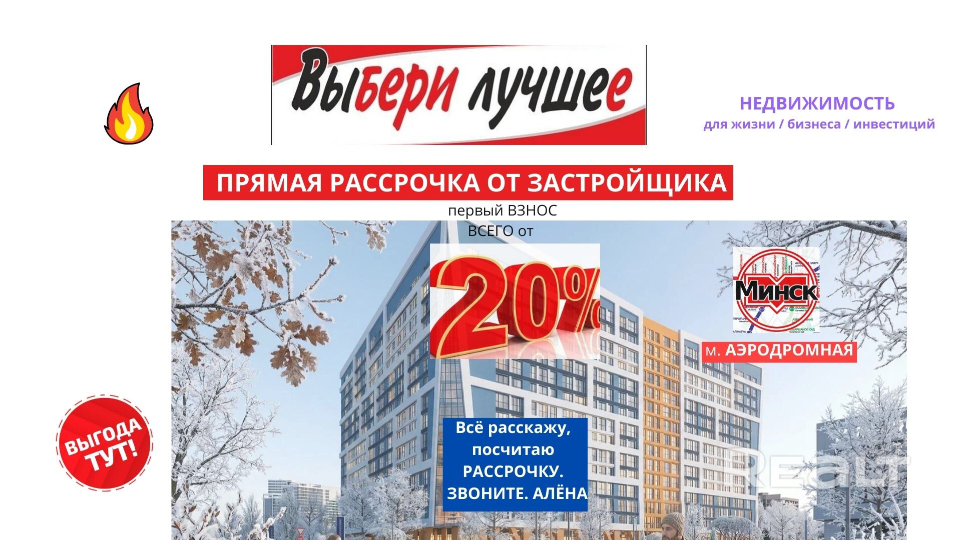 ПРЯМАЯ РАССРОЧКА от ЗАСТРОЙЩИКА 💎 20% первый взнос, 4 года (Без СПРАВОК) Алёна