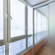 Лоджия застеклена и аккуратна — под рабочее место, зону отдыха или хранение без захламления квартиры.