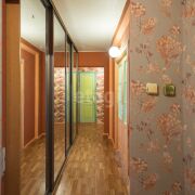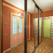 Вдоль всего коридора установлен вместительный шкаф-купе — продуманное решение для хранения.