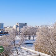 Расположение этой квартиры действительно уникально. Выйдя из дома, вы можете отправиться в долгую пешую прогулку по набережной, поехать на велосипеде по главной велосипедной дорожке Минска. А перейдя через мост, вы окажетесь около метро Первомайская.