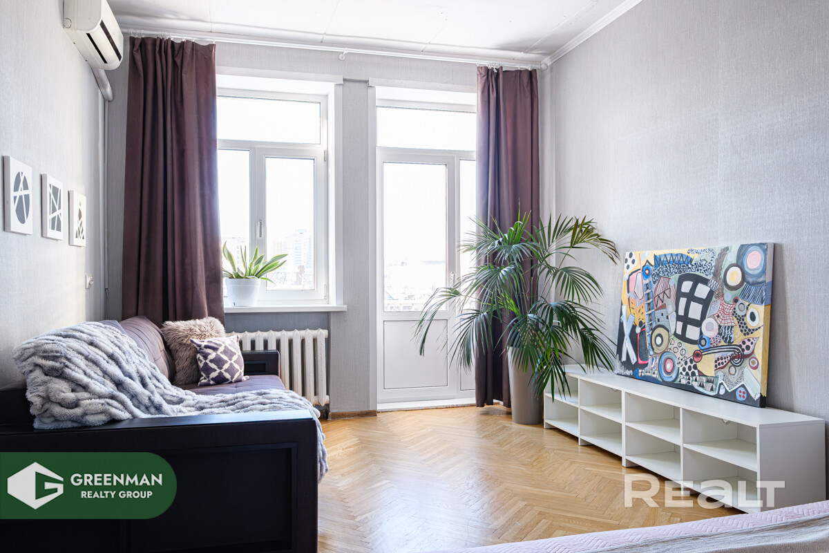 Продается однокомнатная квартира в тихом центре с видом на Свислочь.