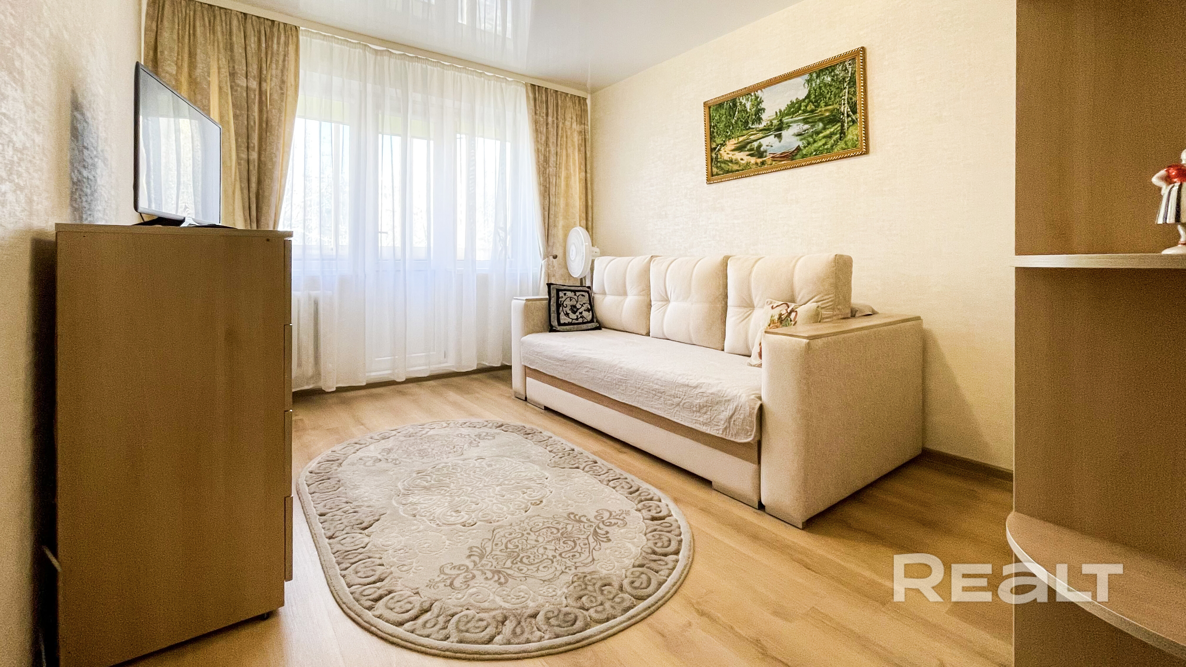 Продаётся готовая двухкомнатная квартира возле живописных скверов, озера Мухлёвка и в шаговой доступности от ст. метро Пушкинская. Адрес: г. Минск, ул. Одоевского, д. 75