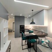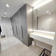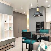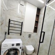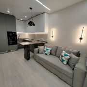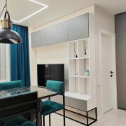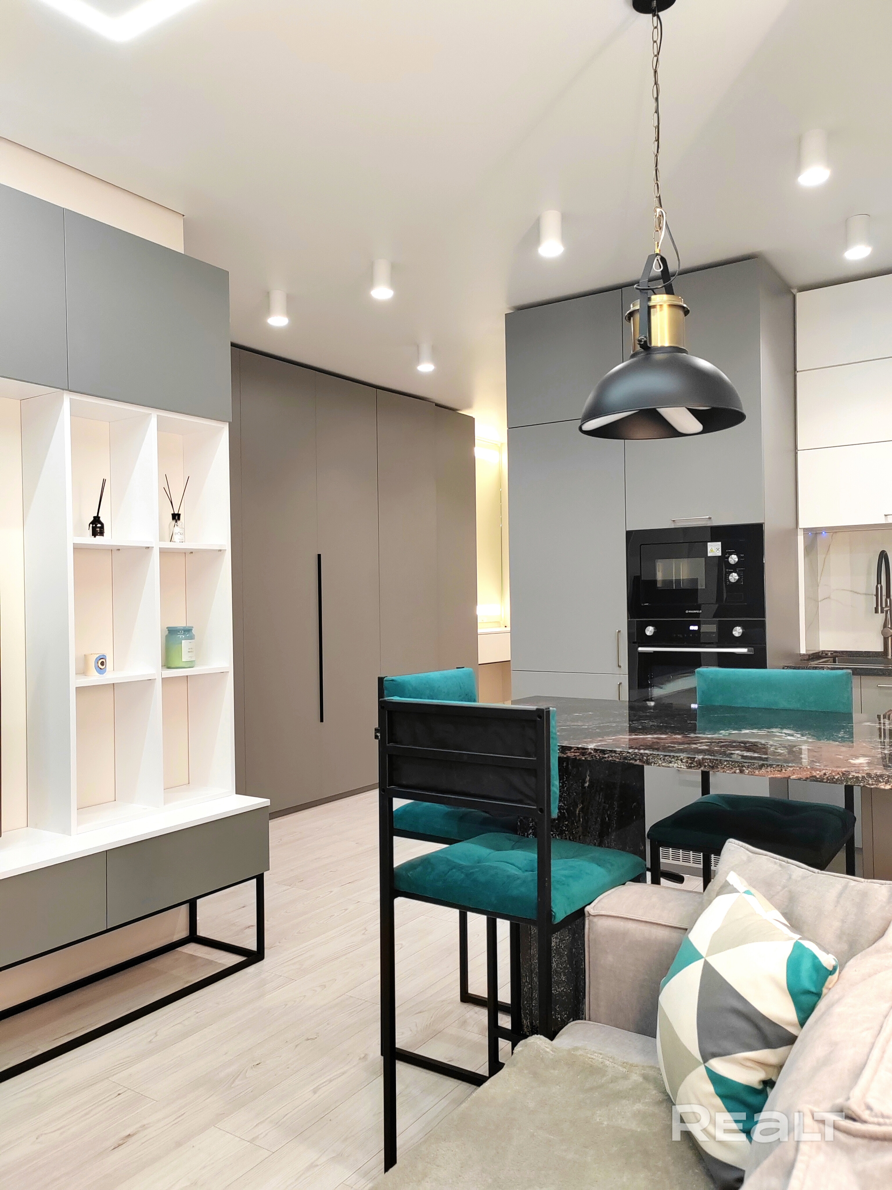 В квартире выполнен дизайнерский ремонт из качественных материалов. Имеется много встроенных систем хранения и шкафов. Вся встроенная мебель выполнена по индивидуальному заказу. Кухонная мебель с бытовой техникой: варочная панель и духовой шкаф, СВЧ, установлена посудомоечная машина, столешница сделана из натурального камня. Отличная квартира как для жизни, так иля инвестиций! Заезжай и живи! Идеальный вариант, с хорошим месторасположением, рядом с метро. Приглашаем на просмотр.