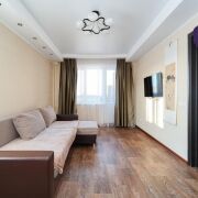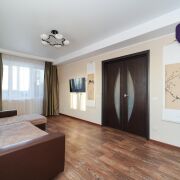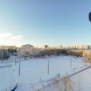 - Общая площадь по СНБ 36,9 м2, жилая — 17,5 м2, кухня 8,4 м2. Раздельный санузел с качественным ремонтом. В жилой комнате окно и лоджия, за счет чего комнату легко можно зонировать. Окна выходят на стадион и зелёную зону, под окнами нет машин.