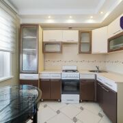 - Ремонт делали для себя: на полу качественный немецкий линолеум и современная плитка, утеплённая лоджия с ремонтом. Встроенные шкафы в коридоре и комнате, на кухне — кухонный гарнитур.