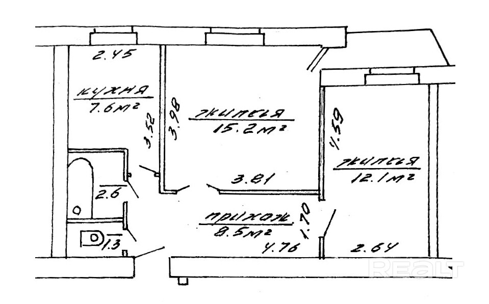 Общая площадь 47.3 м2. 2 раздельные комнаты.