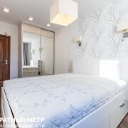Спальня выполнена в классических светлых цветах, и мягкой вечерней подсветкой в виде настенных бра.