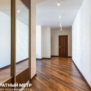 Все межкомнатные двери массив, со скрытыми петлями и магнитными замками. На полах уложен качественный ламинат, а на стенах поклеены обои в нейтральной цветовой гамме. Потолки выровнены и покрашены.