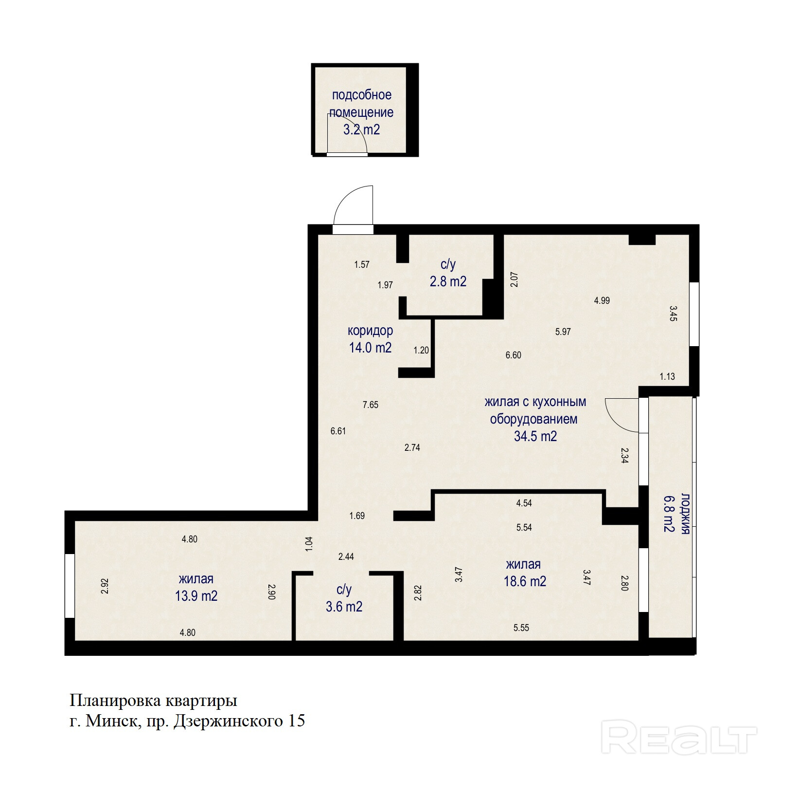 Трехкомнатная квартира 92,2 м2 (с кладовой), расположенная по адресу пр-т Дзержинского, 15