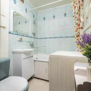 - Санузел совмещённый, облицован плиткой, практичен в использовании и удобен для регулярной уборки.