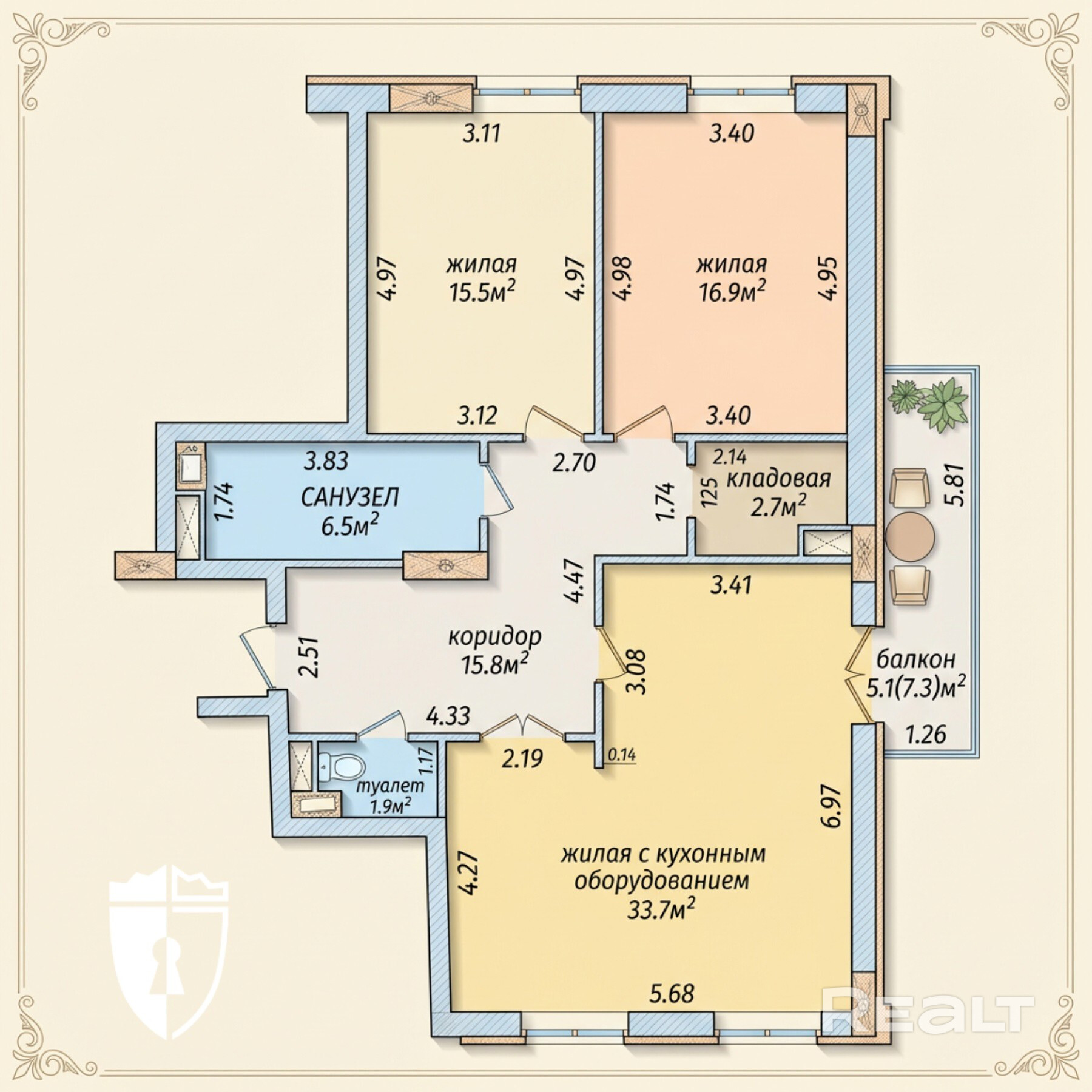 Вы заходите и забываете о суете. Воздух наполнен тишиной и покоем. Продуманная планировка и безупречный дизайнерский ремонт с европейскими материалами дышат гармонией. Встроенная техника ждет, чтобы помочь в создании уютного семейного ужина или романтического вечера. Это пространство, где каждая вещь на своем месте, а каждая комната ждет, чтобы наполниться вашими историями.