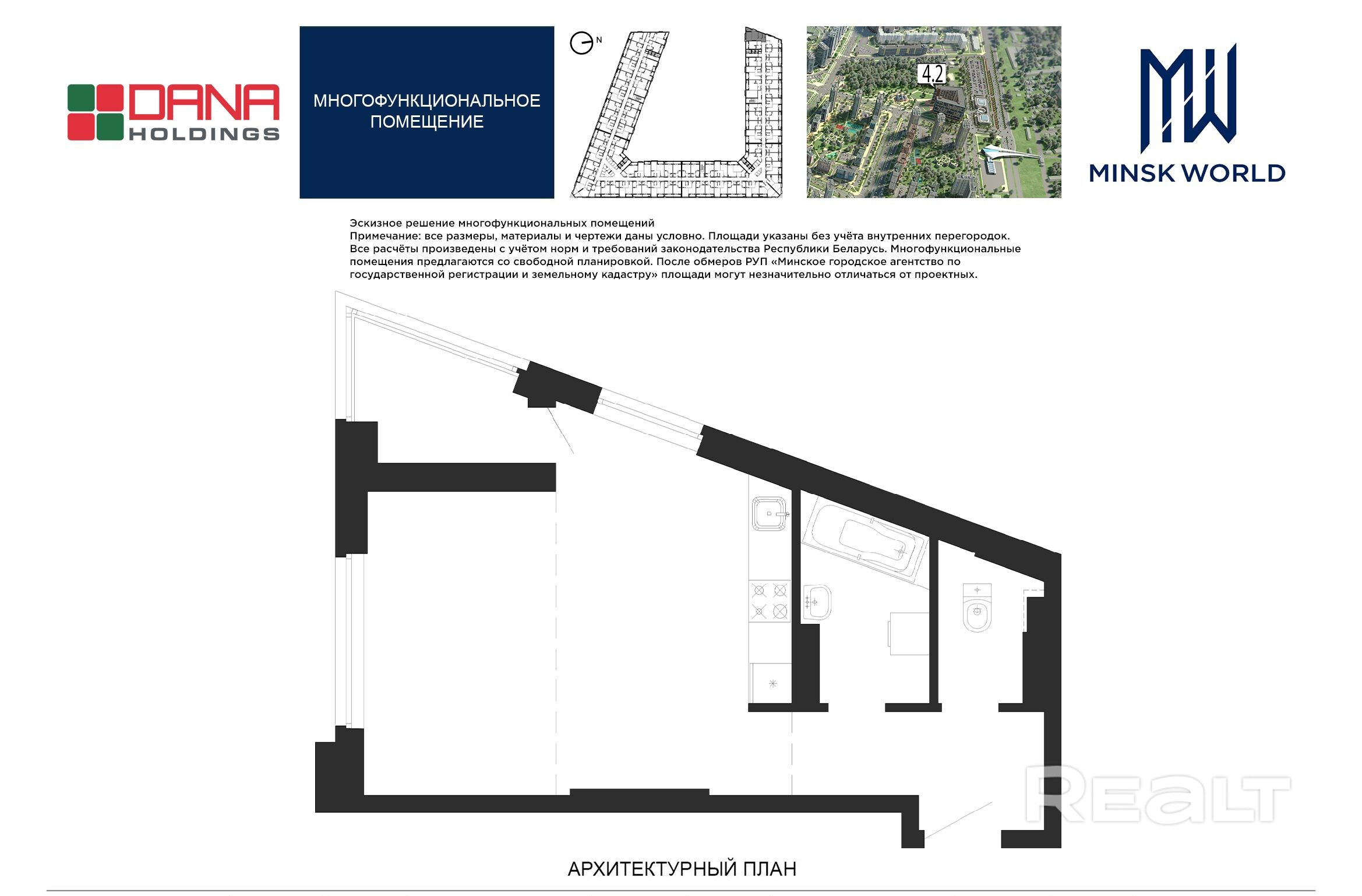 Высота от пола до потолка — 2,67 м. Большинство бизнес-апартаментов имеют панорамные окна, в каждом — лоджии.