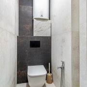 В ванной комнате предусмотрена удобная широкая ванна 180×80 см с тропическим душем и продуманным освещением. В туалете установлен бойлер на случай отключения горячей воды.