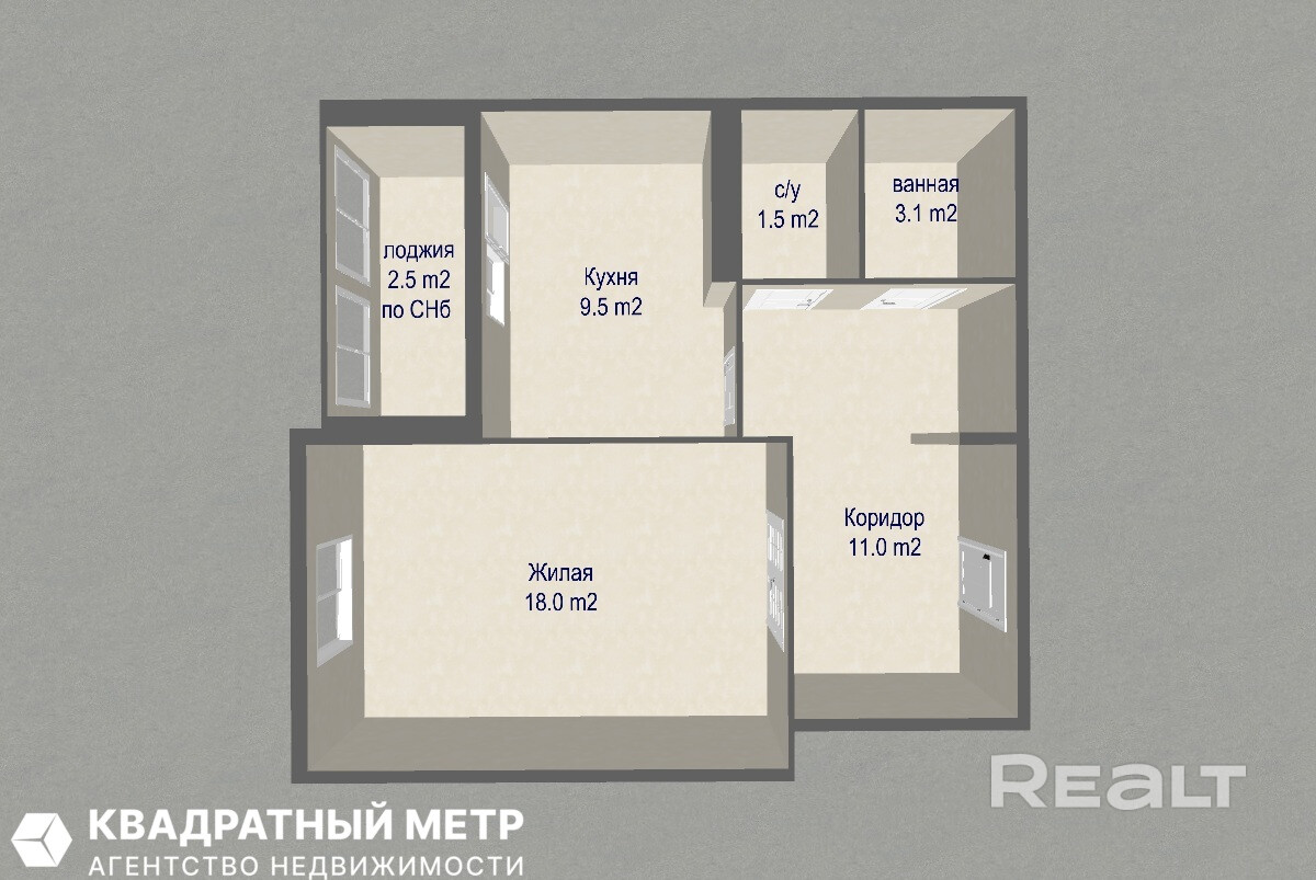 · общая площадь по СНБ 45,6 кв.м., жилая комната 18 кв.м.