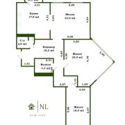 - Площадь, которой можно гордиться: Общая – 101,3 м2 по СНБ, жилая – 58.3 м2, кухня – 17.8 м2.