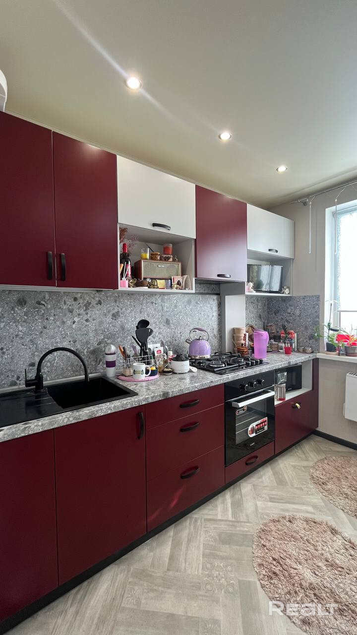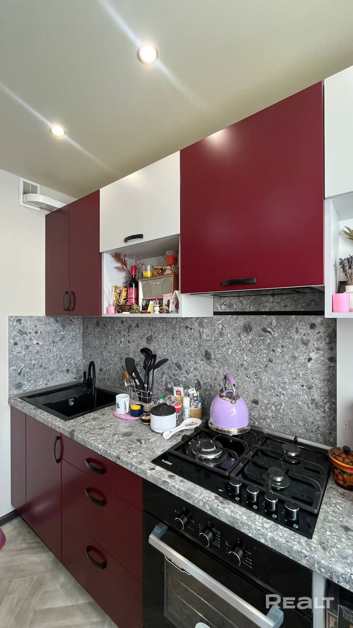 Установлены окна ПВХ, встроенный шкаф, кухня оборудована варочной газовой панелью и  электрическим духовым шкафом. Напольное покрытие: в комнате и коридоре – ламинат, кухне – линолеум, ванной – плитка.