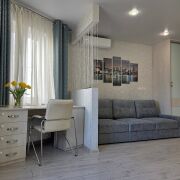 В квартире остаётся мебель, изготовления по индивидуальному заказу, а также бытовая техника (варочная панель, духовой шкаф, посудомоечная машина - Bosch, холодильник LG, кондиционер CH).