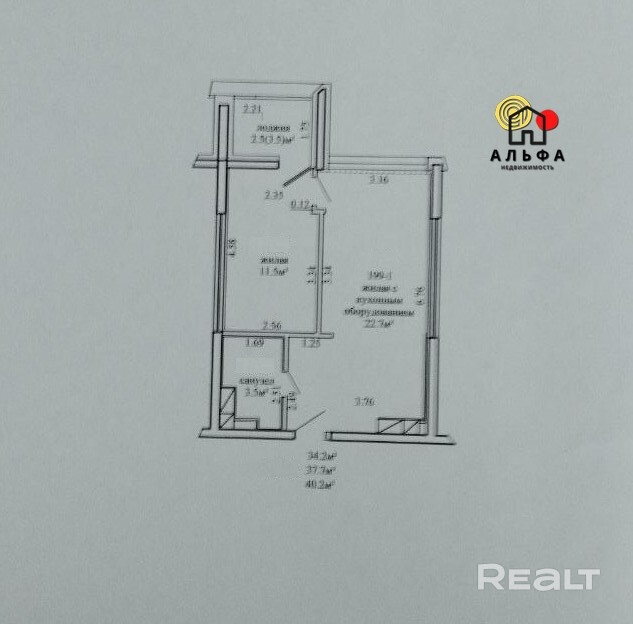Площадь квартиры по СНБ: 40,2 кв.м.