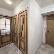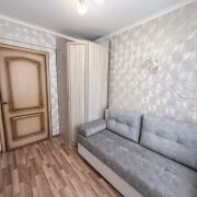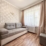 Две раздельные комнаты и одна проходная. Стены оклеены хорошими обоями. На полу в жилых комнатах ламинат, а на кухне и прихожей - линолеум.