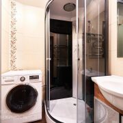 Дом повышенной комфортности 2000 года, находится в зеленой зоне. Квартира расположена на 6-м этаже 12 дома. Общая площадь по СНБ – 77.9 м2, жилая – 45.4 м2, кухня – 9 м2. Высота потолков 2,61 м. Отличная планировка – две широкие застекленные лоджии, санузлы удалены от кухни. Добротный ремонт, выполнен из качественных материалов. Кухня и межкомнатные двери – массив. Установлены стеклопакеты. На полу – ламинат, на стенах обои. В санузлах и на кухне уложена плитка – все максимально практично.