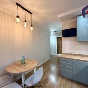 -Просторная кухня, площадью 8,4 кв.м.Установлен современный кухонный гарнитур «ЗОВ», встроенная техника остаётся, всё выглядит цельно и продуманно. Есть удобная обеденная зона.