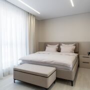 Продуманная электрика: проходные выключатели, мастер-выключатель, ночная подсветка. В спальне — шторы с электроприводом.