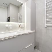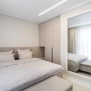 В квартире выполнен очень качественный ремонт — делали для себя, с акцентом на долговечность и техническую надёжность. Работали профессиональные мастера, все этапы выполнены с соблюдением технологии.