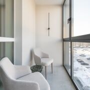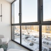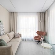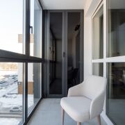 Лоджия полностью переоборудована под рабочий кабинет: заменены стеклопакеты, выполнен подогрев пола, выведены розетки и освещение — полноценное рабочее пространство без компромиссов.