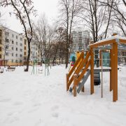 Тихий благоустроенный двор и прилегающая территория, детская площадка во дворе дома.
