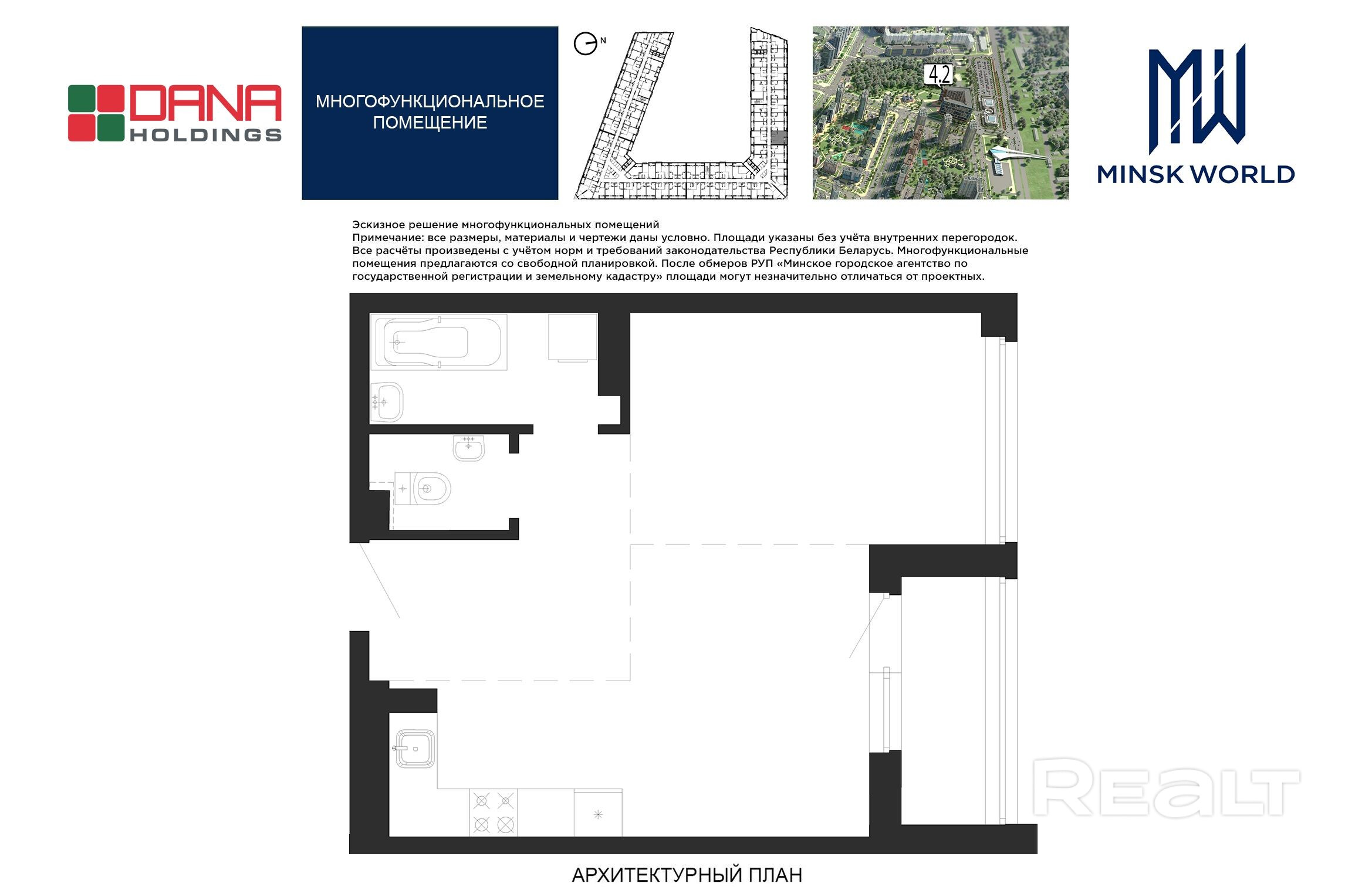 Высота от пола до потолка — 2,67 м. Большинство бизнес-апартаментов имеют панорамные окна, в каждом — лоджии.