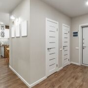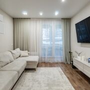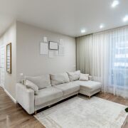Три изолированные комнаты: две спальни 10 и 16 м, кухня гостинная 25 м. Раздельный санузел, две лоджии. Окна выходят во двор, что немало важно, нет шума от дороги.
