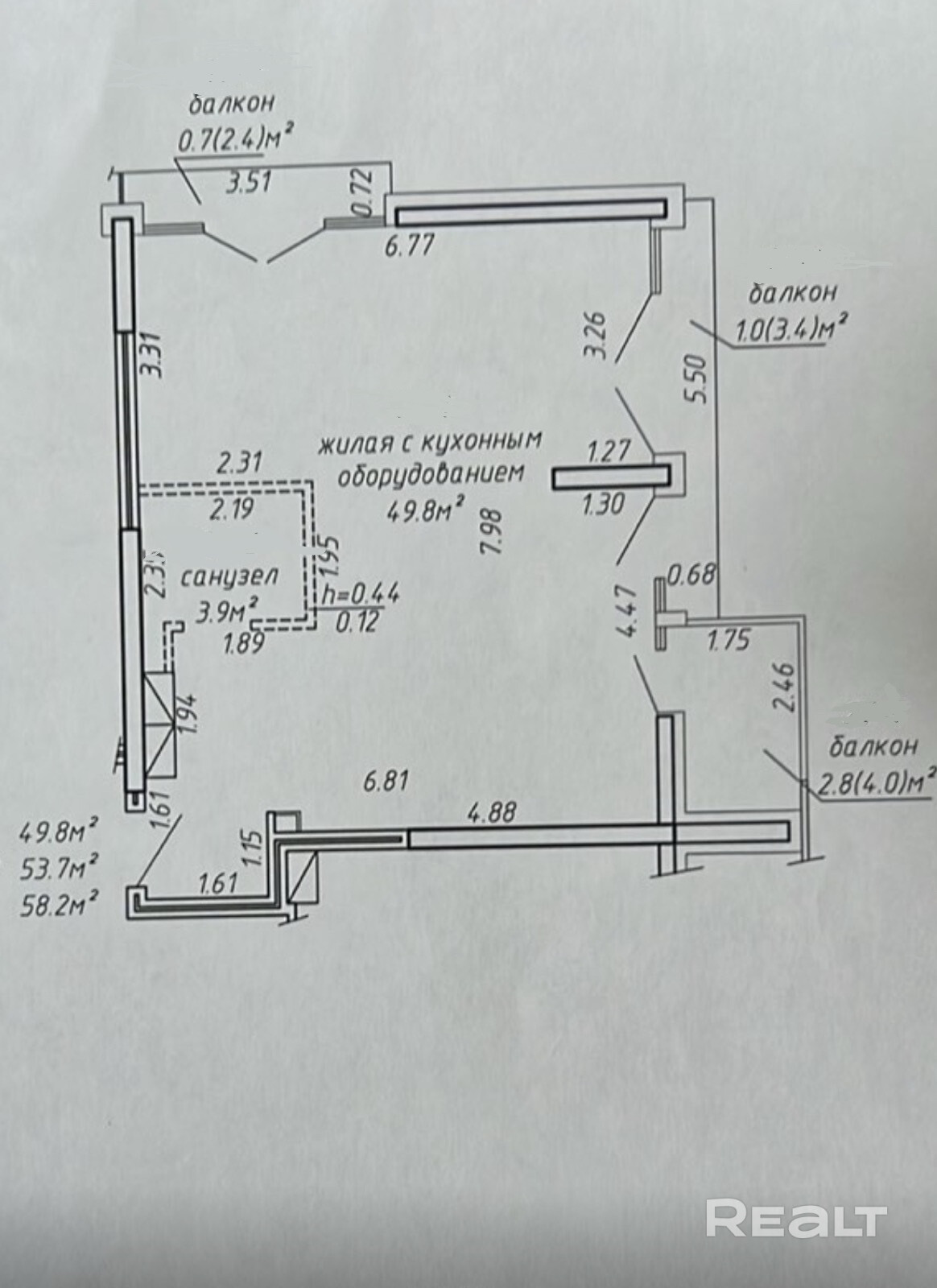 58 м²