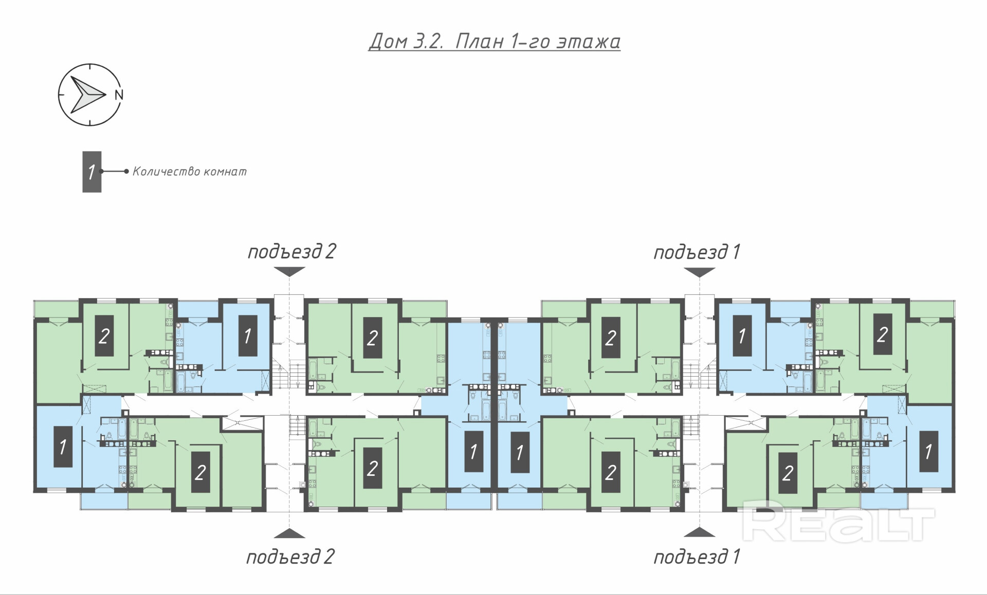 2-подъездный 5 этажный монолитно-каркасный дом.