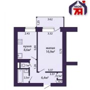 -Общая площадь квартиры - 36,1 кв.м, из которых 16,9 кв.м занимают жилые помещения.